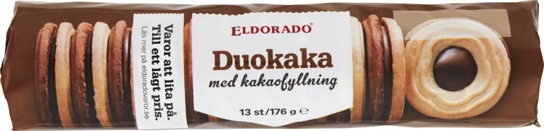 KEX: VETEMJÖL, socker, palmfett, vatten, VETESTÄRKELSE, fettreducerat kakaopulver, glukosfruktossirap, SKUMMJÖLKSPULVER, bakpulver (E450, E503, E500), salt, emulgeringsmedel (solroslecitin), naturlig vaniljarom. KRÄMFYLLNING 31%: Socker, vegetabiliskt fett (palm, kokos), fettreducerat kakaopulver, VASSLEPULVER, emulgeringsmedel (solroslecitin), naturlig vaniljarom. Kan innehålla spår av ÄGG, JORDNÖT, SOJA, MANDEL och HASSELNÖT.