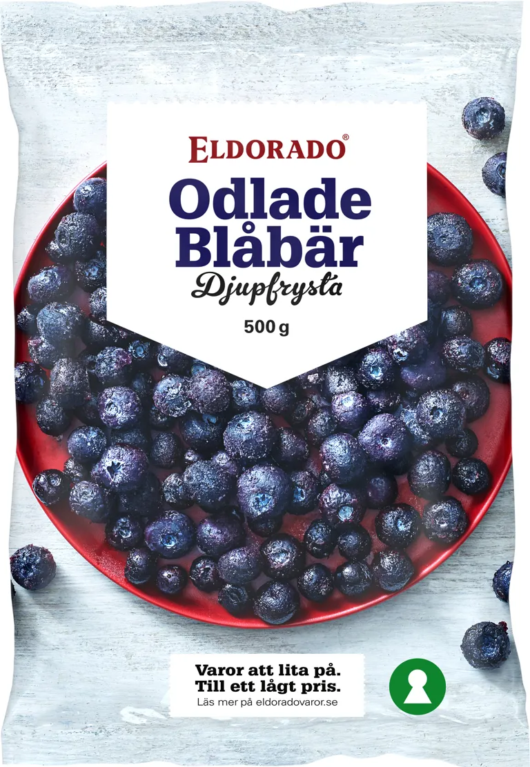Djupfrysta odlade blåbär. 500 gram.