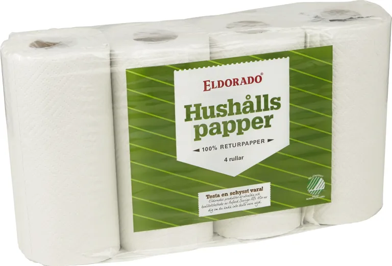 Hushållspapper gjort av 100% returpapper. Längd per rulle: 15,6 m 2-lags papper.