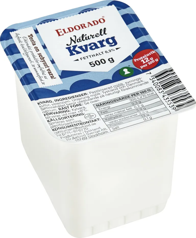 Naturell kvarg. Rik på protein. Fetthalt 0,3%. 500 gram.