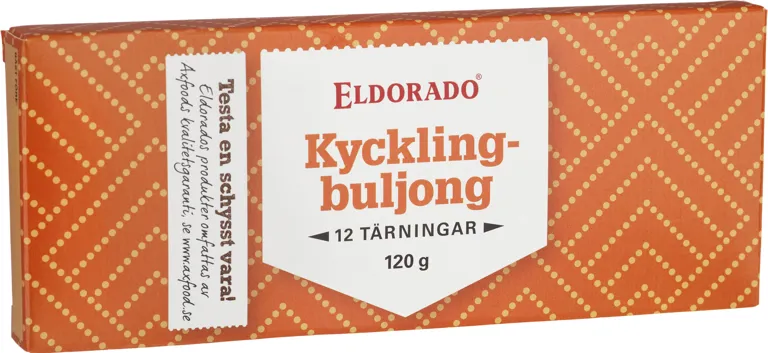 Salt, palmfett*, smakförstärkare (E621, E635), potatisstärkelse, socker, kycklingfett 4%, jästextrakt, kycklingaromer, lök, morot, gurkmeja, palsternacka, persilja, svartpeppar, surhetsreglerande medel (citronsyra), färgämne (sockerkulör), kycklingkött 0,1%. Kan innehålla spår av SULFIT. *Hållbarhetscertifierad palmolja. Läs mer på www.axfood.se/palmolja.