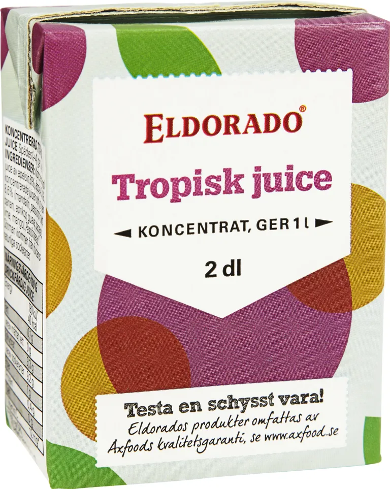 Koncentrerad tropisk juice. Späds med vatten. 2 dl koncentrat ger 1 liter juice.