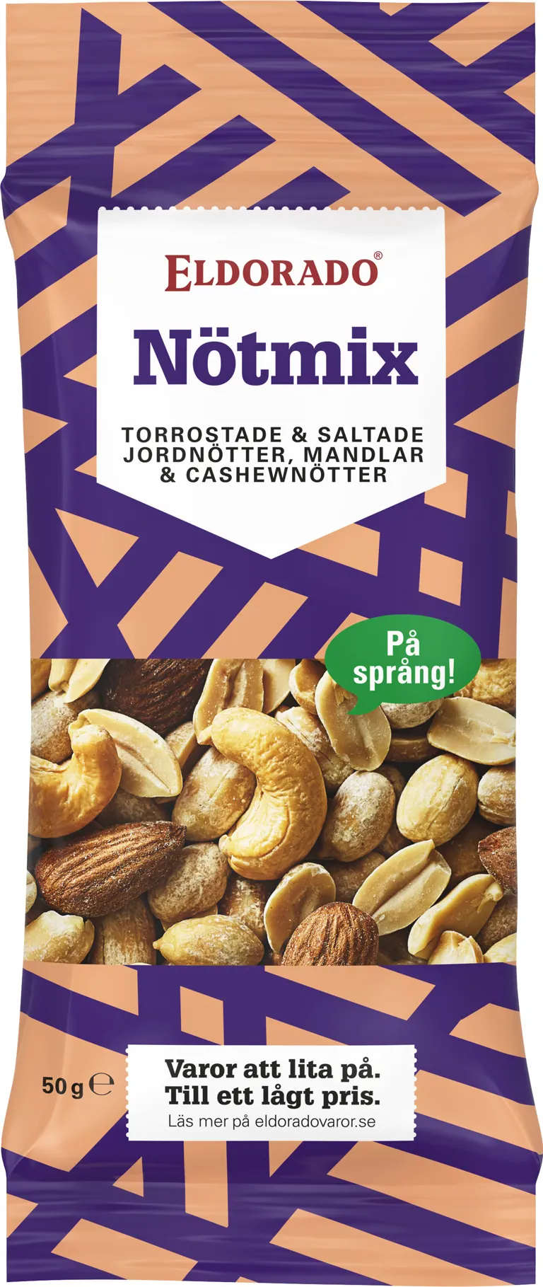 Nötmix med torrostade och saltade jordnötter, mandlar och cashewnötter. 50 gram.