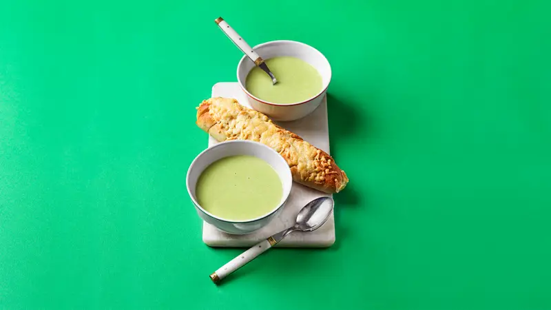 Broccolisoppa med ostgratinerad vitlöksbaguette för ca 16 kr