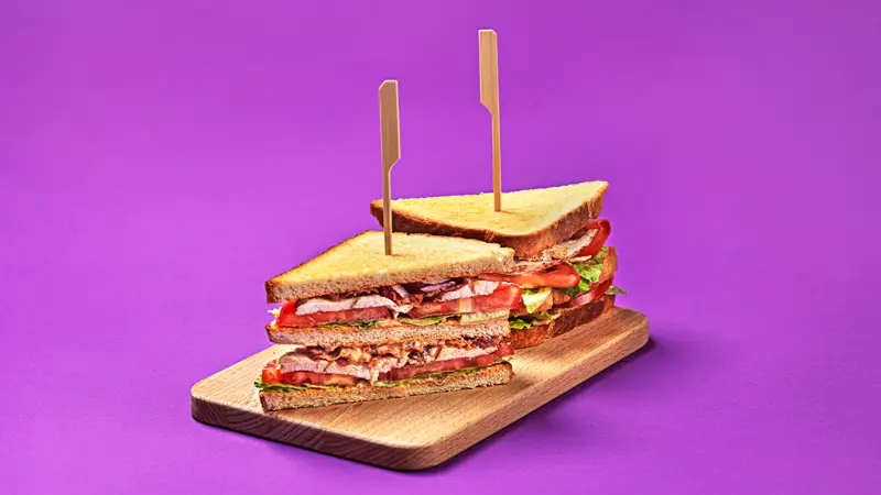 Club sandwich med chilimajonnäs för 26 kr