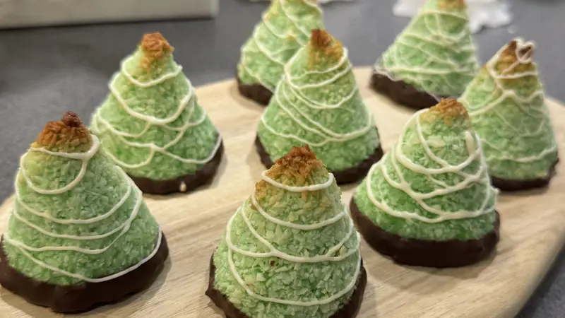 Gör julfikat extra festligt med kokostoppar som dekorerats till julgranar med grön karamellfärg och chokladdetaljer. Enkla att baka och perfekta för både jul- och glöggmingel! Receptet på juliga kokostoppar har tagits fram tillsammans med Hanna Freed.