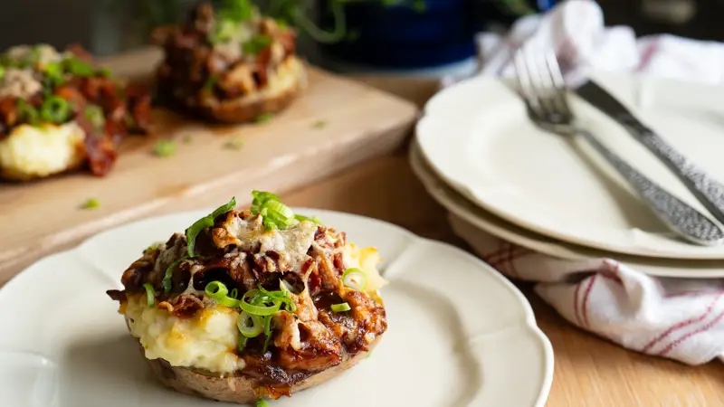 Testa våra loaded potatoes med grillad BBQ-kyckling, bacon, riven ost och salladslök. En riktigt god rätt att servera under sommaren. En portion loaded potatoes kostar ca 41 kr.