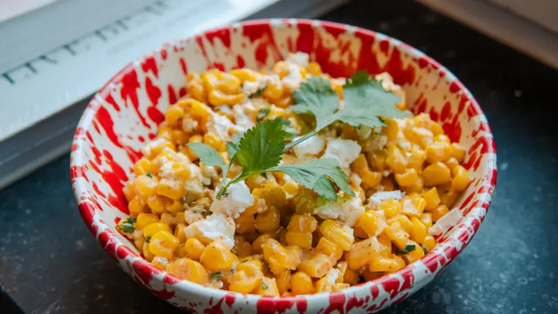 Mexikansk majssallad - ett supergott tillbehör på få ingredienser som du kan slänga ihop på 10 minuter. Servera till tacos eller grillad kyckling. Vår festliga majssallad kostar ca 21 kr per portion om du använder produkter från Eldorado.