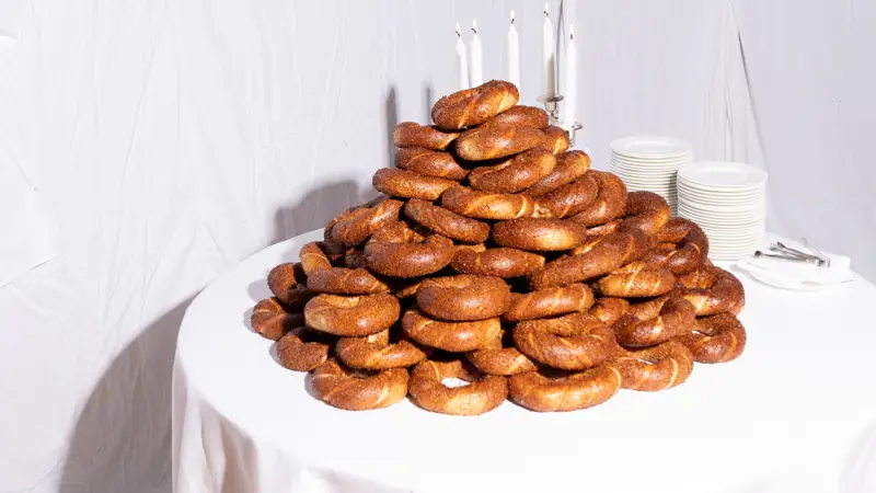 Bröd är ett säkert kort som alla gillar och blir mätta av på ett bröllop. Servera med smör eller en god dipp inför varmrätten. Detta kan dukas upp festligt på ett sidobord som gästerna själva kan plocka ifrån. En lyxig och festlig anrättning helt enkelt! Beställ simitkringlor av ditt lokala bageri eller baka egna.