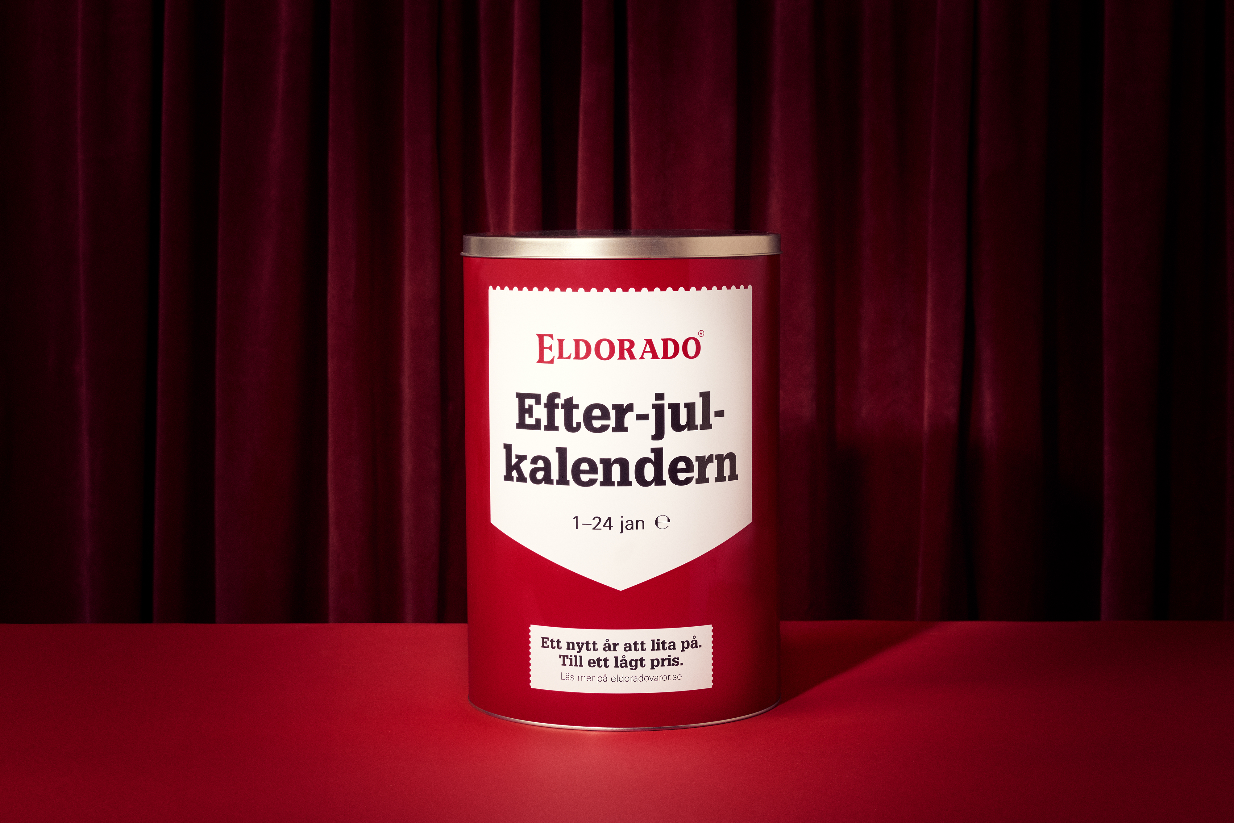 Läs mer om Eldorados Efter-jul-kalender fylld med 24 luckor av basprodukter som snabbkaffe, tomatpuré och ris. -