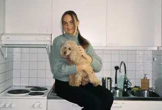 - Mitt favoritdjur är hundar, är hundvakt åt en fantastisk dvärgpudel som heter Humlan (hon är med på bilden). Hundar är så snälla och mysiga. Sen fascineras jag något otroligt av hajar, de är både läskiga och coola!