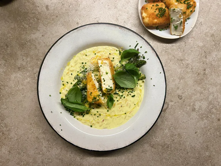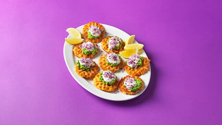Våfflad potatisbulle med ärtröra & romsås för ca 5 kr