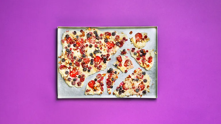 Kvargbräck med bär, mandel och kokos för ca 27 kr